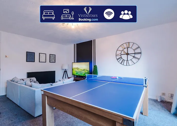De 3-badkamer villa vindt u binnen 10 minuten rijden van de Kunstgalerie van Manchester. Spacious 4Bdr House By Vista Stays Short Lets & Serviced Accommodation Manchester With Driveway Parking & Pool Table villa is binnen 3 km van het City of Manchester 'Etihad' Stadium gesitueerd.
